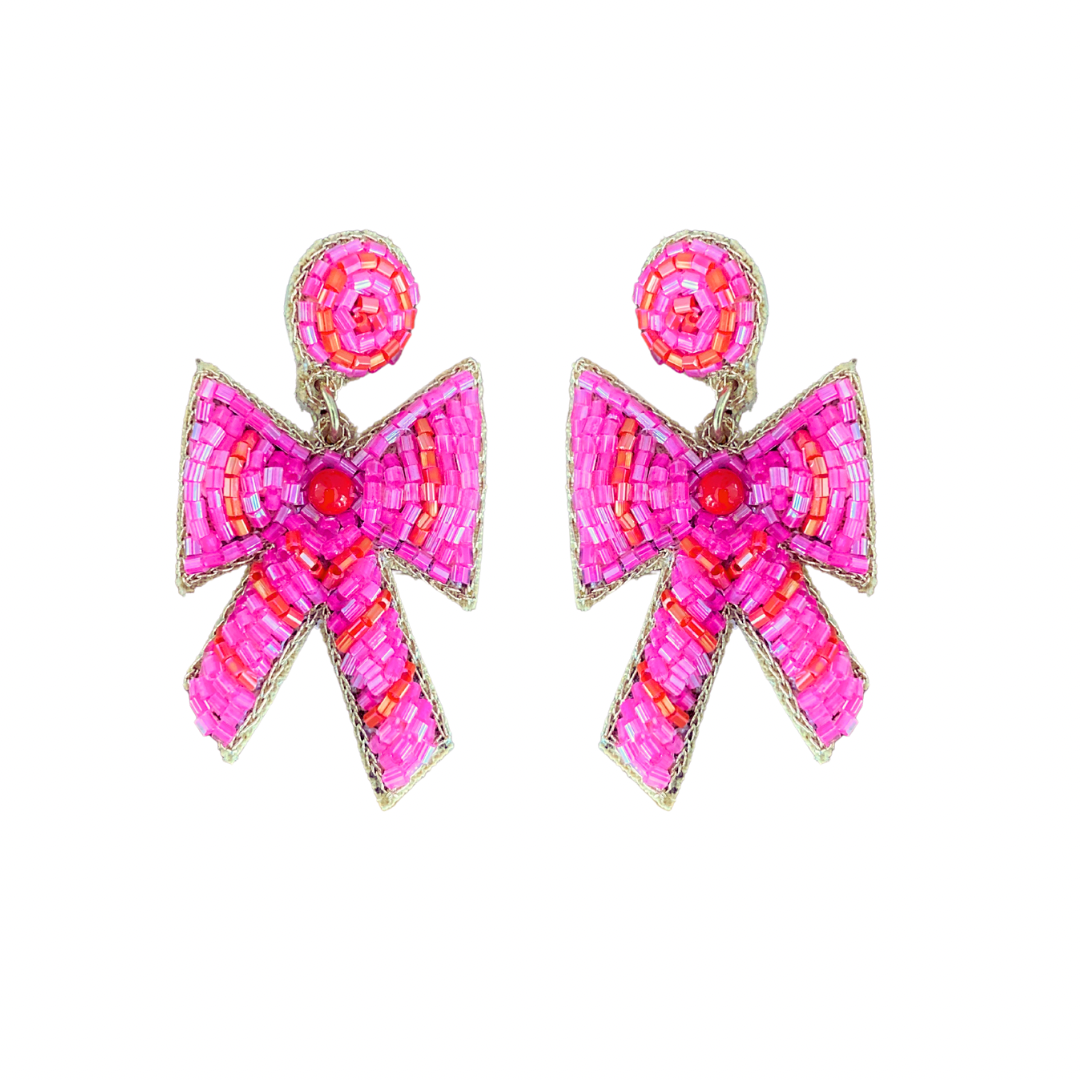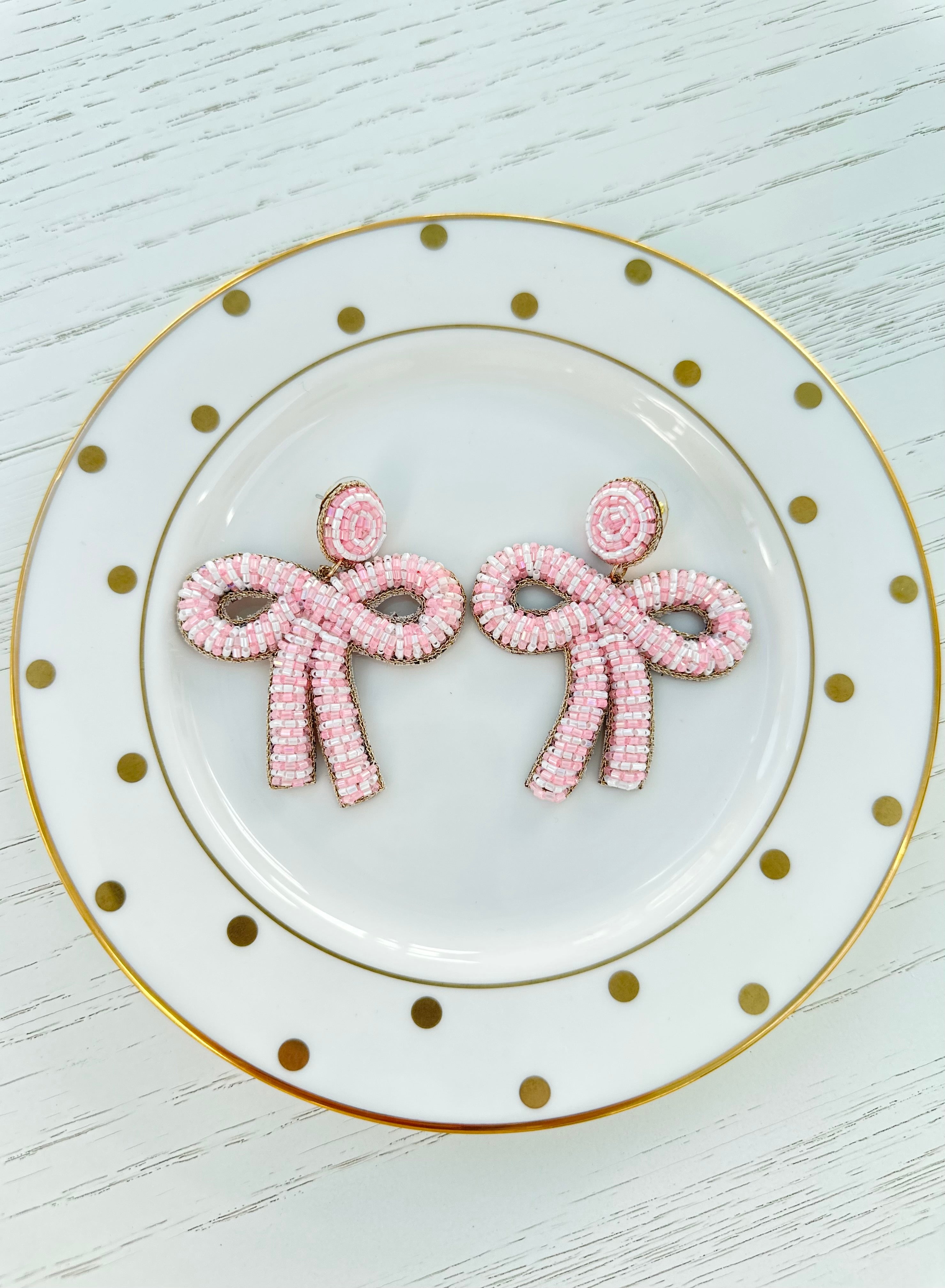 Pink & White Bow Earrings