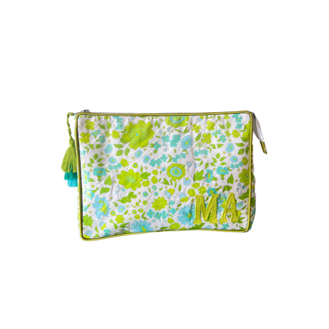 Our India bags combine beauty and practicality, each one custom-made to order by our skilled partners in India. With over 20 prints to choose from in our fabric library, simply provide your name or monogram, and we'll craft the perfect bag for you! The bags are fully covered in premium vinyl, making them easy to clean both inside and out – ideal for cosmetics, electronics, and more.