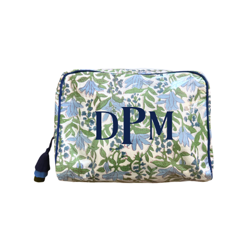 The OG India Bag - Blue and Green Block Print - Monogrammed